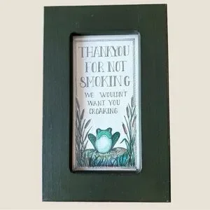 Thank you for not smoking, we wouldn’t want you croaking sign. Vintage. Has some worn edges, scratches, dings, does not take away from the aesthetic. See photo.