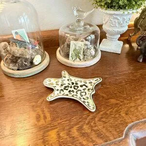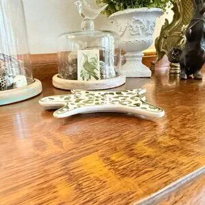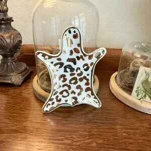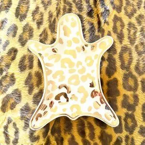Leopard Jewelry Tray Porcelain 6" Gold and white