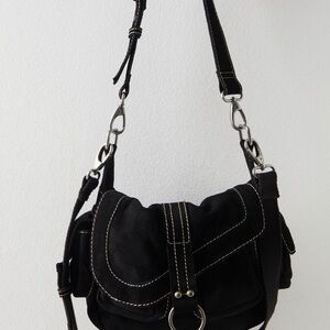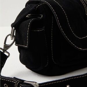 Brand new with tags! The bestselling Wylie Saddle Bag by Free People in rich black suede.sold out at Free People! This year trendy bag that gone viral!