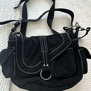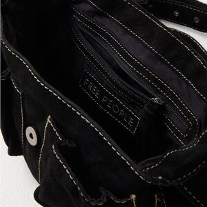 NWT Free People, black suede bag, Wylie Saddle Bag, boho crossbody, festival style, leather purse, FP collection, western chic, trending accessories 2025, adjustable strap, new with tags, Free People original