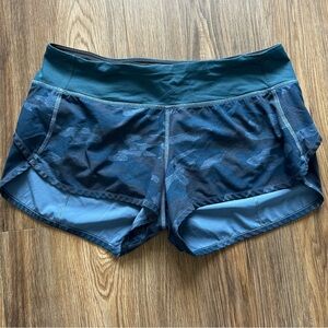 Lululemon 4" Run Times Speed Shorts Lotus Camo Oil Slick Blue Size 6 HTF Rare
