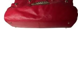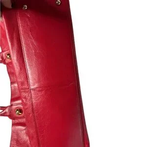 Stylish red leather handbag with gold accents. Perfect for any occasion.pre-owned gently used