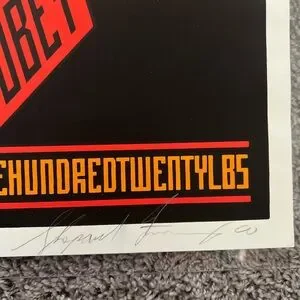 Bold Obey art print. Features striking red and black colors. Eye-catching design.