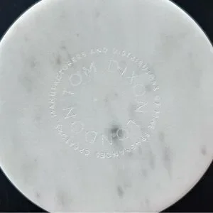 Elegant medium candle with a rose gold holder. Features a white stone lid. Perfect for home accents.