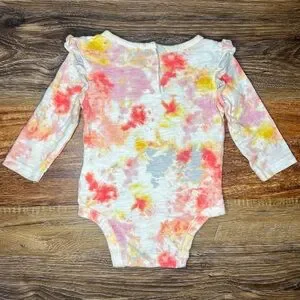 Old Navy Baby Girls Long Sleeve Ruffle Trim Tie Dye Bodysuit, Size 3-6M