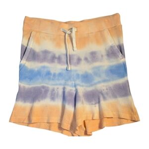 Simply Southern 2 PC Set Tie Dye Hoodie & Drawstring Shorts Waffle Knit SZ L