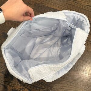 Plush fluffy tote perfect for use as a gym bag, carry-on, overnight bag, etc!