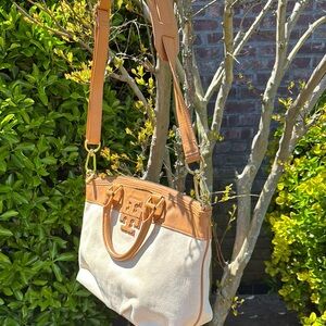EUC Tory Burch Tan and Cream Tote Bag,Structured Design Tan and off white Cavas