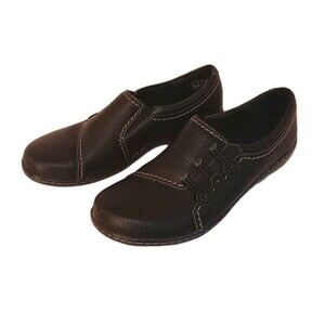 Elevate your everyday ensemble with the Clarks Ashland Effie Flat Slip-on Loafers. Crafted with sophisticated black leather uppers accented by white stitching, these shoes offer a classic look that transitions effortlessly from the office to casual outings. The comfortable design is perfect for those who are always on the go, ensuring both style and comfort. The round-toe silhouette provides ample space for a comfortable fit, while the slip-on closure ensures ease of wear. Ideal for travel or daily wear, these size 8.5 loafers embody preppy charm and understated elegance, making them a versatile addition to any wardrobe.