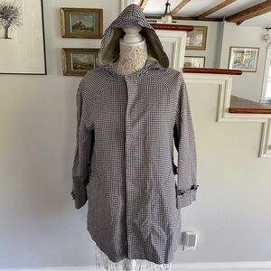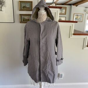 APC Navy Checkered Hooded Trench Coat Jacket Large