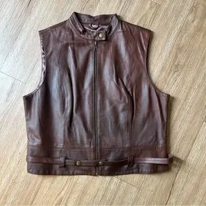 Cabi Brown Leather Belted Vest