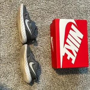 These Nike sneakers feature a sleek gray and white design, perfect for a sporty look. The velcro strap ensures a secure fit, while the mesh and synthetic materials provide breathability and durability. Ideal for casual wear, these sneakers offer comfort with Nike's foam cushioning technology.