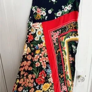 This Farm Rio for Anthropologie skirt features a striking asymmetrical design in vibrant orange and red hues, perfect for resort wear. The maxi length and A-line silhouette offer a flowing elegance, while the lightweight fabric ensures comfort and grace with every step.