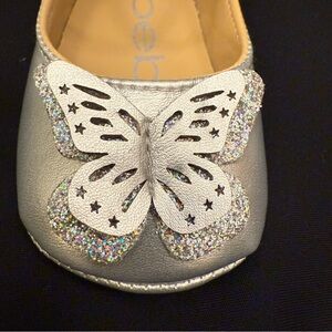 Bebe Silver Butterfly Baby Infant Walker Fashion Shoes Ankle Strap size 4 NWT