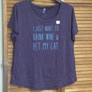 Brand: Next Level Apparel Size: XL Color : purple Length: 25” Width pit to pit: 21” Celebrate your feline affection with this vibrant purple tee, designed for cat enthusiasts. The shirt features a playful slogan that captures the joy of spending time with your furry friends. Its casual style makes it a perfect choice for relaxed outings or cozy days at home.