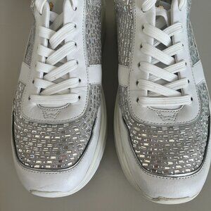 Stuart Weitzman CHRISTA White Leather Embellished Platform Sneaker Sz 8