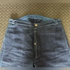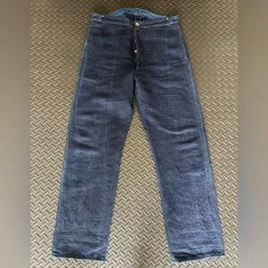 * Fabric: A sturdy 15 Oz. blend of 80% linen and 20% cotton indigo-dyed HBT textile, selvedge, milled in Japan.