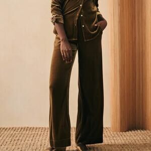 NWT Faherty Stretch Silk Velvet Genevieve Pants Green Size Large