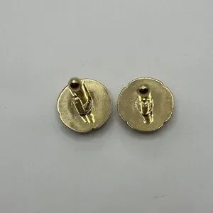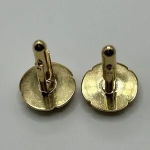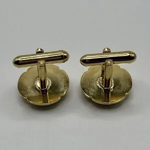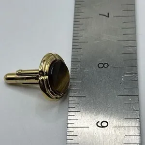 Tiger Eye Cuff Links Brown Gold Tone Round Unsigned
