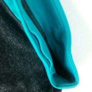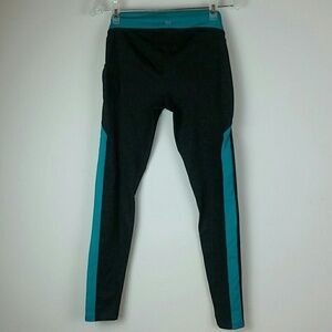 Teal colored waistband and stripe up the side of the legs
