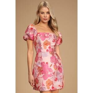 Embrace elegance with this stunning floral pink dress. Featuring charming puff sleeves, it's perfect for any occasion.