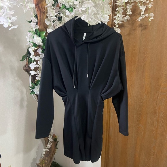 HALARA Drawstring Dropped Shoulder Long Sleeve Pleated Hip Wrapped Mini Dress 🖤