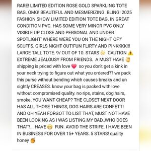 Color & Material: Pink rose Gold sparkling pvc, polyester logo tan lining interior