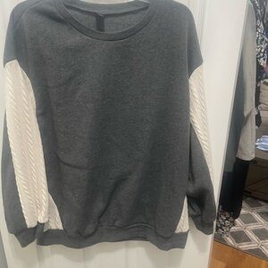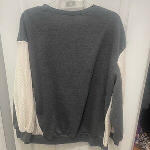 SHEIN Gray and Cream Crew Neck Sweater with Textured Sleeves