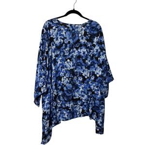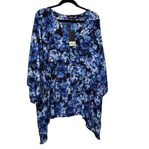 Slim Factor by Investments NWT Plus Size Royal Blue Floral Tunic Blouse Size 3X