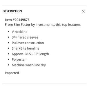 This brand-new with tags (NWT) Slim Factor by Investments tunic blouse is a must-have for your wardrobe. Featuring a stunning royal blue floral print, this top has a flowy, flattering silhouette that is perfect for any occasion. The lightweight fabric ensures comfort, while the versatile design makes it easy to dress up or down.
