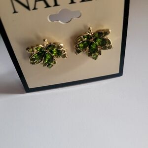 Napier Gold Tone Autumn Spice Leaf Stud Earrings