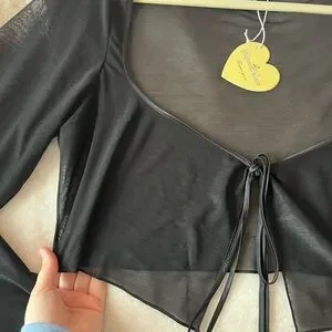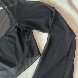 Please review photos! Delicate sheer silk trim and sheer, airy poly fabric. An archived piece!