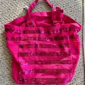 NWT Victoria's Secret HOT Pink Canvas Tote Bag Carry All Sequins