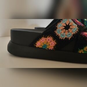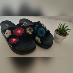 Y2K 90's Chunky Platform Floral Crochet Retro Vintage Sandals. Size 6