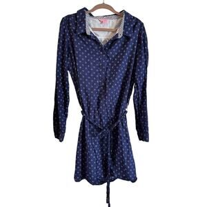 Lilly Pulitzer Davie Navy Blue White Button Print Tie Waist Shirt Dress Size 16