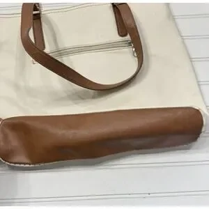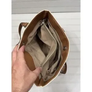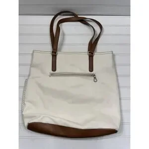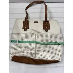 RELIC Shoulder Bag Tote Handbag Ivory Faux Leather with Brown Trim Double Handle