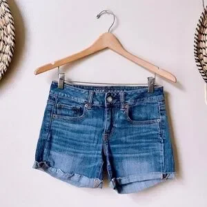 American Eagle Super Stretch Midi Denim Shorts Blue Size 4