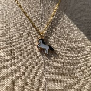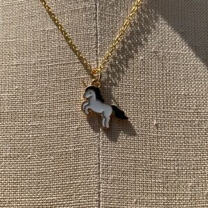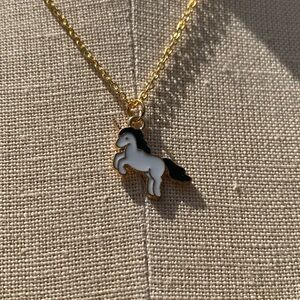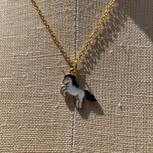 Elegant gold-tone sterling silver chain with black & white enamel alloy unicorn charm pendant necklace perfect for any occasion. Add a touch of charm to your outfit with this beautifully crafted piece.