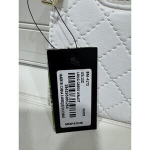 Studio Badgley Mischka White Quilted Long Cards Wallet NWT Vegan Leather
