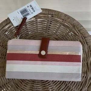 Stylish Radley London clutch featuring elegant pink and white and grey tones. Perfect for any occasion. New with tags Snap Closure Bi-Fold Zipper Lots of slots for credit cards