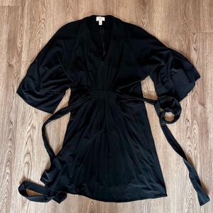This flowing little black dress from Banana Replublic Issa collection would be perfect for office or cocktail party. Loose 3/4 length sleeve. Zippered front v-neck and tie around the waist accentuates a womanly shape. 100% rayon. Size 8. EUC!