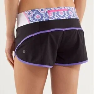 Lululemon Run Speed Short Low Rise in Great Condition in Size 6 in the pattern Twiggy Power Purple/ Black
