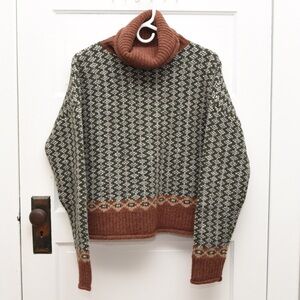 Levitate women’s cowl neck sweater size Small green brown pattern