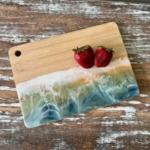 Ocean Waves Resin Wood Cutting Board Charcuterie Board Cheeseboard Beach House