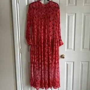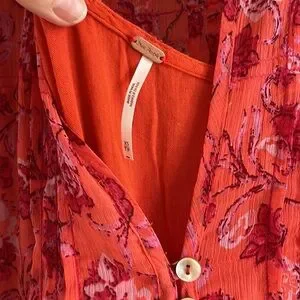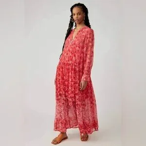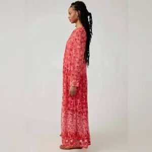 Free People See It Through Dress in Coral Peach Combo Size XS NWT