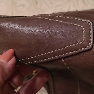 Elegant brown leather bag perfect for any occasion. Crafted with quality materials for a stylish look. Well cared for leather. Examine photos for any flaws.
