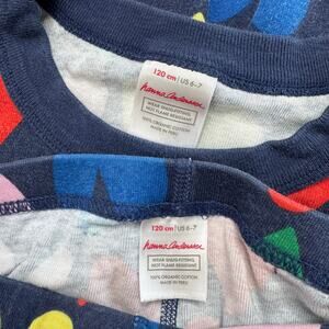 HANNA ANDERSSON Blue Multi Hearts Long Johns Pajama Set Size 120 6-7 Organic