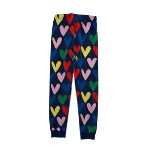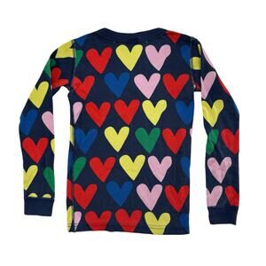 HANNA ANDERSSON Blue with large multicolor hearts Long Johns Pajama Set. Size 120 / 6-7. Long sleeve top and long pants. 100% Organic cotton. Spot on one sleeve (see photos). In otherwise very good condition with only minor signs of normal wash/wear (minor overall fade; see photos) -- no rips or holes.