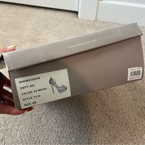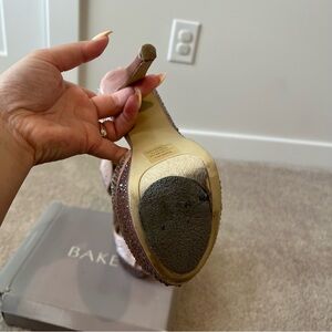 Step out in style with these elegant peep-toe platform heels. Adorned with sparkling embellishments, these pink shoes add a touch of glamour to any outfit.