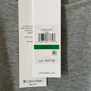 NWT brand new! Never worn. Long sleeve, polyester, viscose & spandex blend by Calvin Klein. Square neck. SLIM fit. Measurements in photos. Gray. Cropped. Women’s Size Large. Smoke free home
